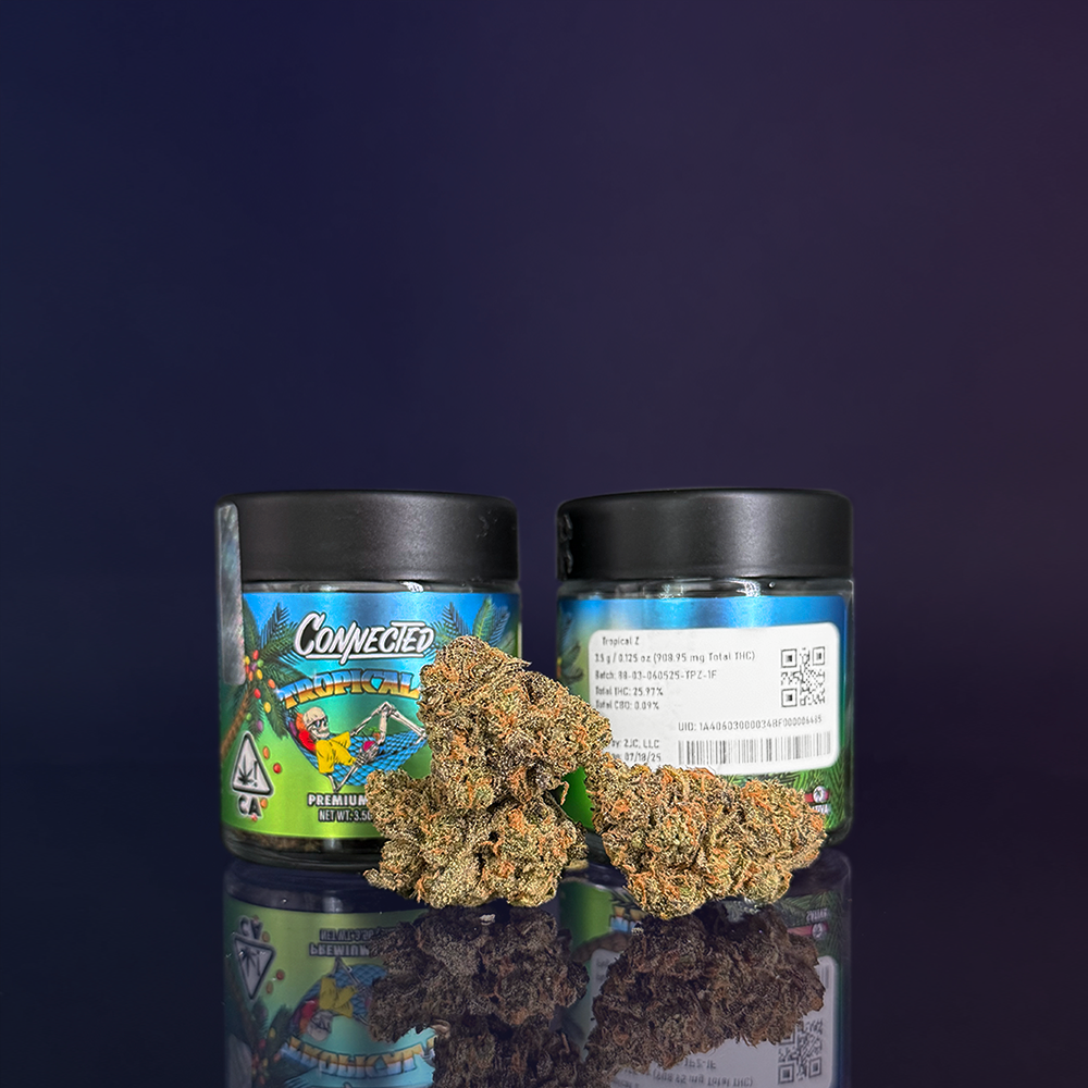 Tropical Z — A sun-soaked blend (Xeno × GDPTHH #9) bursting with creamy citrus, tropical fruit, and zesty sweetness.