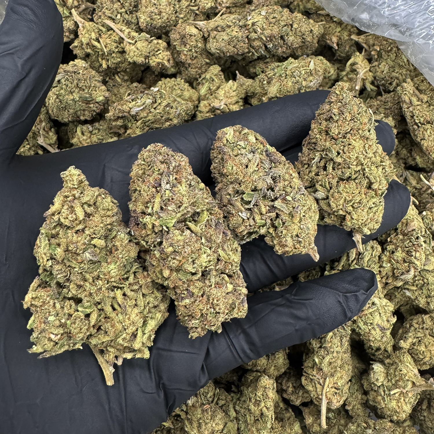 Appearance: Lumpy flat heart-shaped olive-green buds with amber hairs and chunky amber trichomes