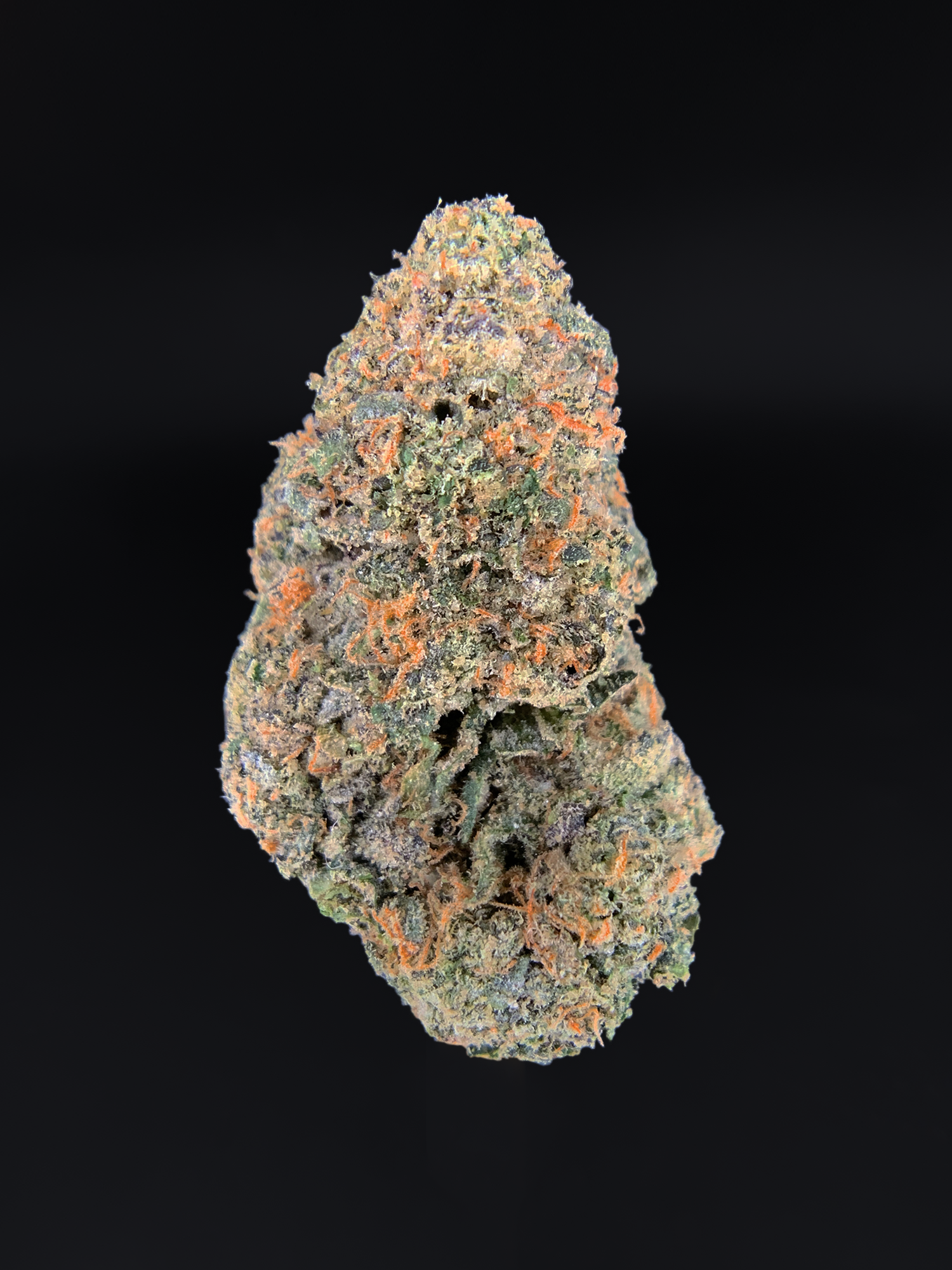 With THC testing between 24–28%, this cut is potent but balanced. The high begins with a soft mental uplift—calm, euphoric, slightly hazy—before melting into a full-body wave of relaxation. Muscles loosen. Stress fades. The mind quiets. As the indica dominance takes over, sedation settles in without overwhelming panic or raciness.