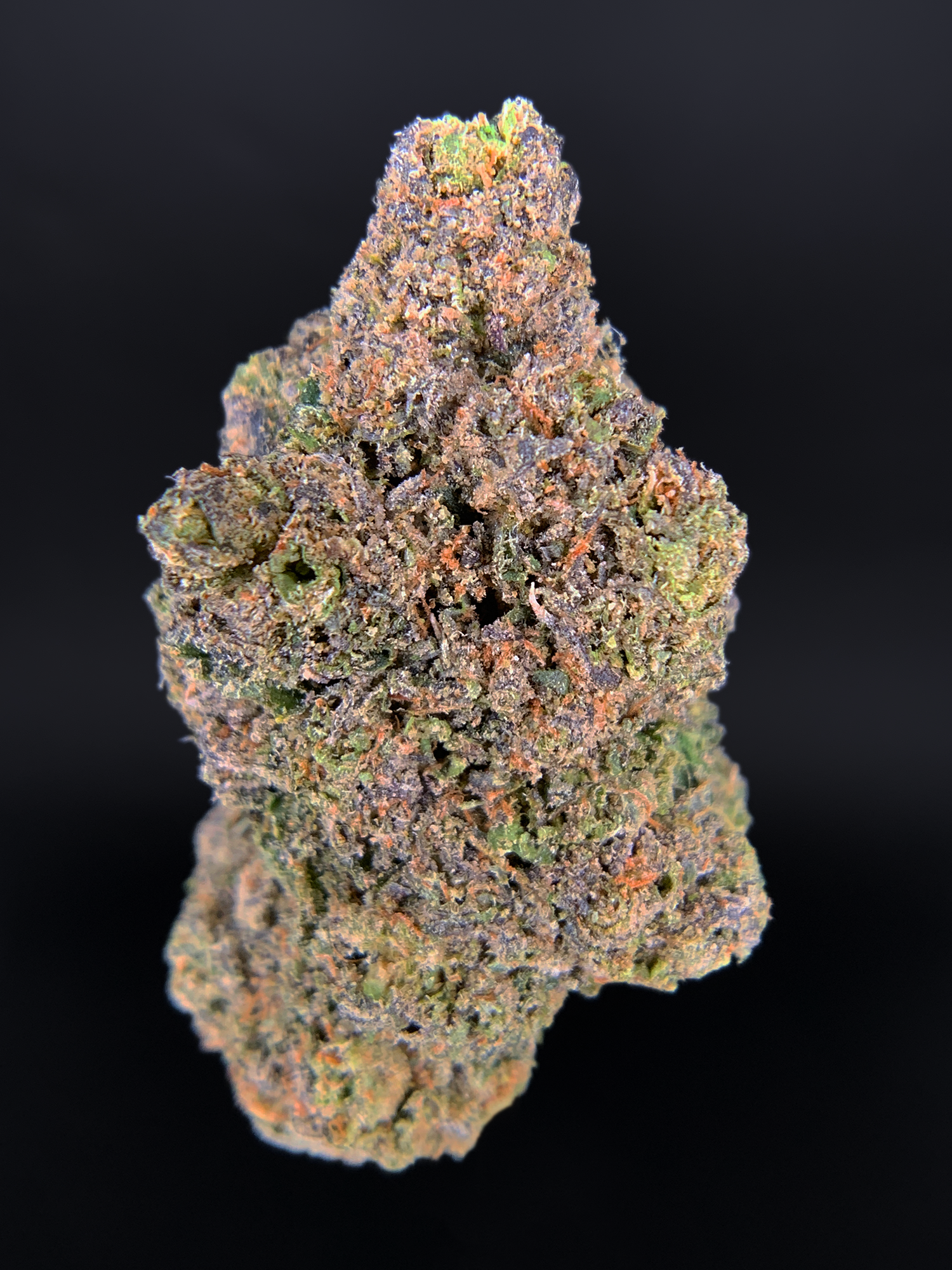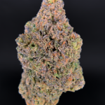 Appearance: Green & purple buds with fiery pistils and crystal trichomes