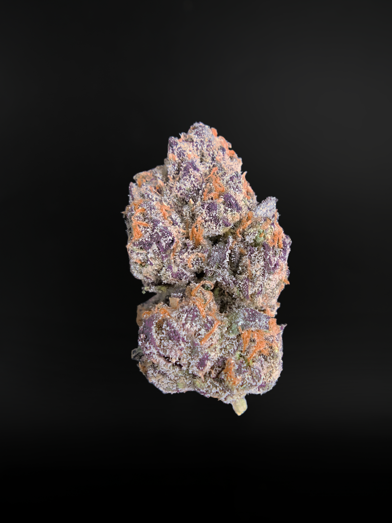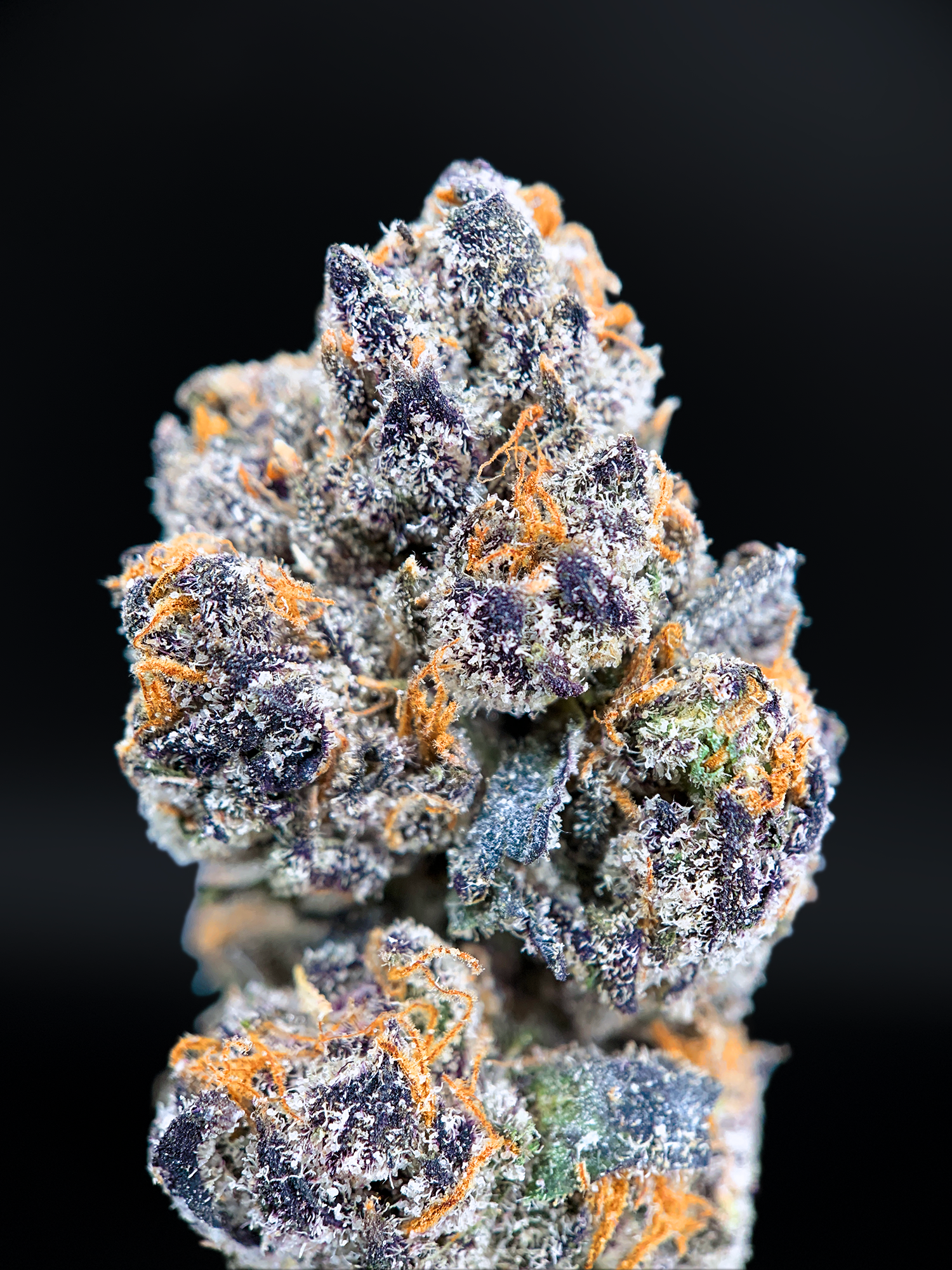 Appearance: Dark olive green buds, deep purple hues, amber hairs, milky trichomes