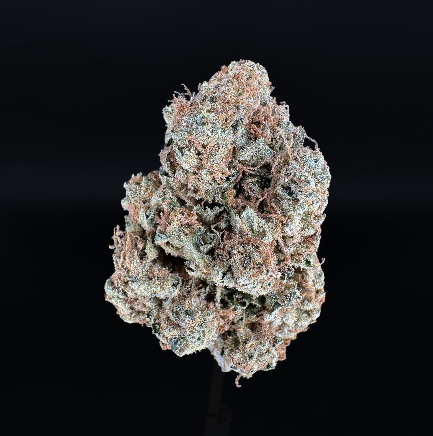 Appearance: Fluffy oversized neon-green buds with red-orange hairs and frosty amber trichomes