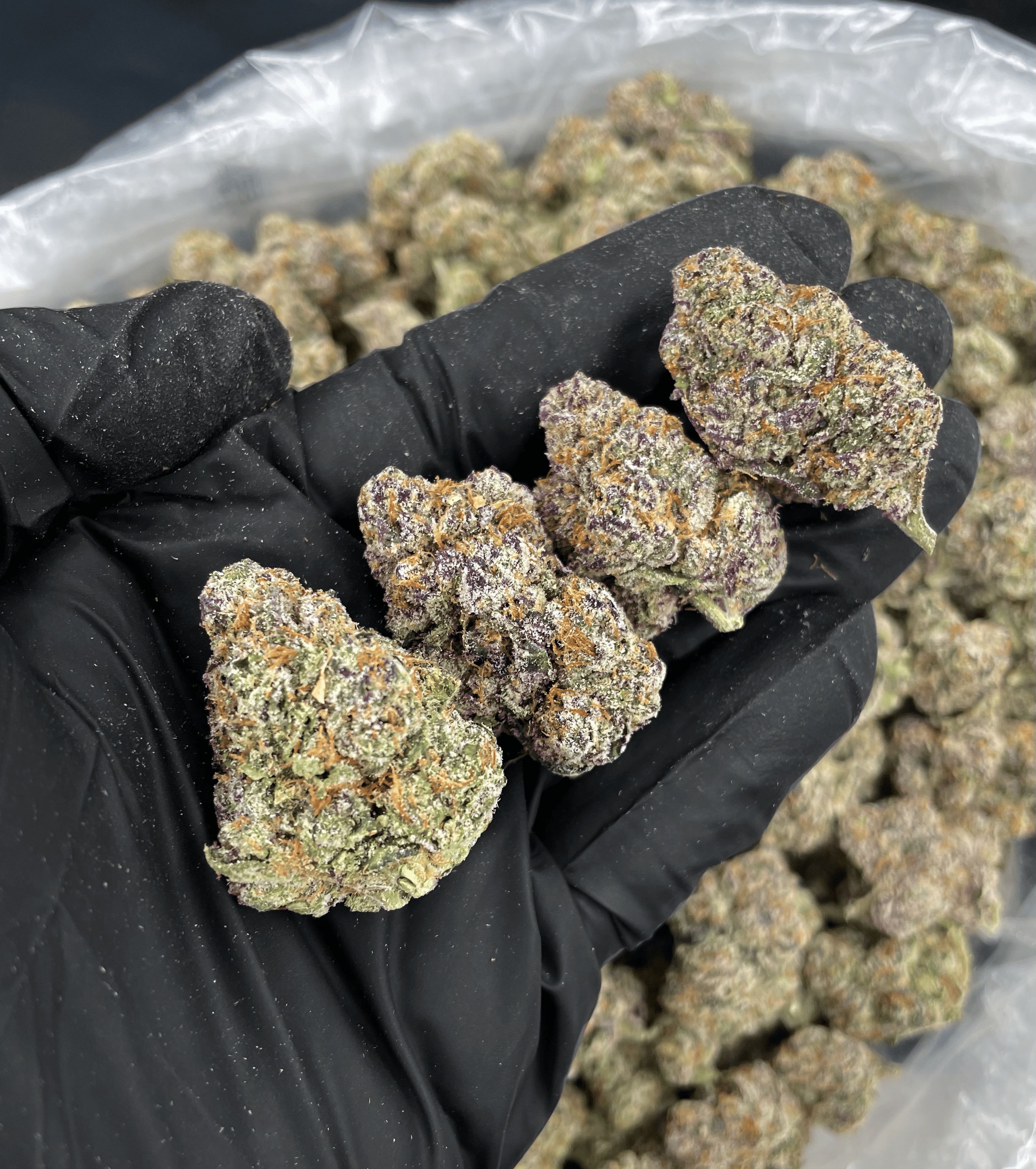 Appearance: Forest green buds with deep purple hues, orange pistils, thick milky trichomes