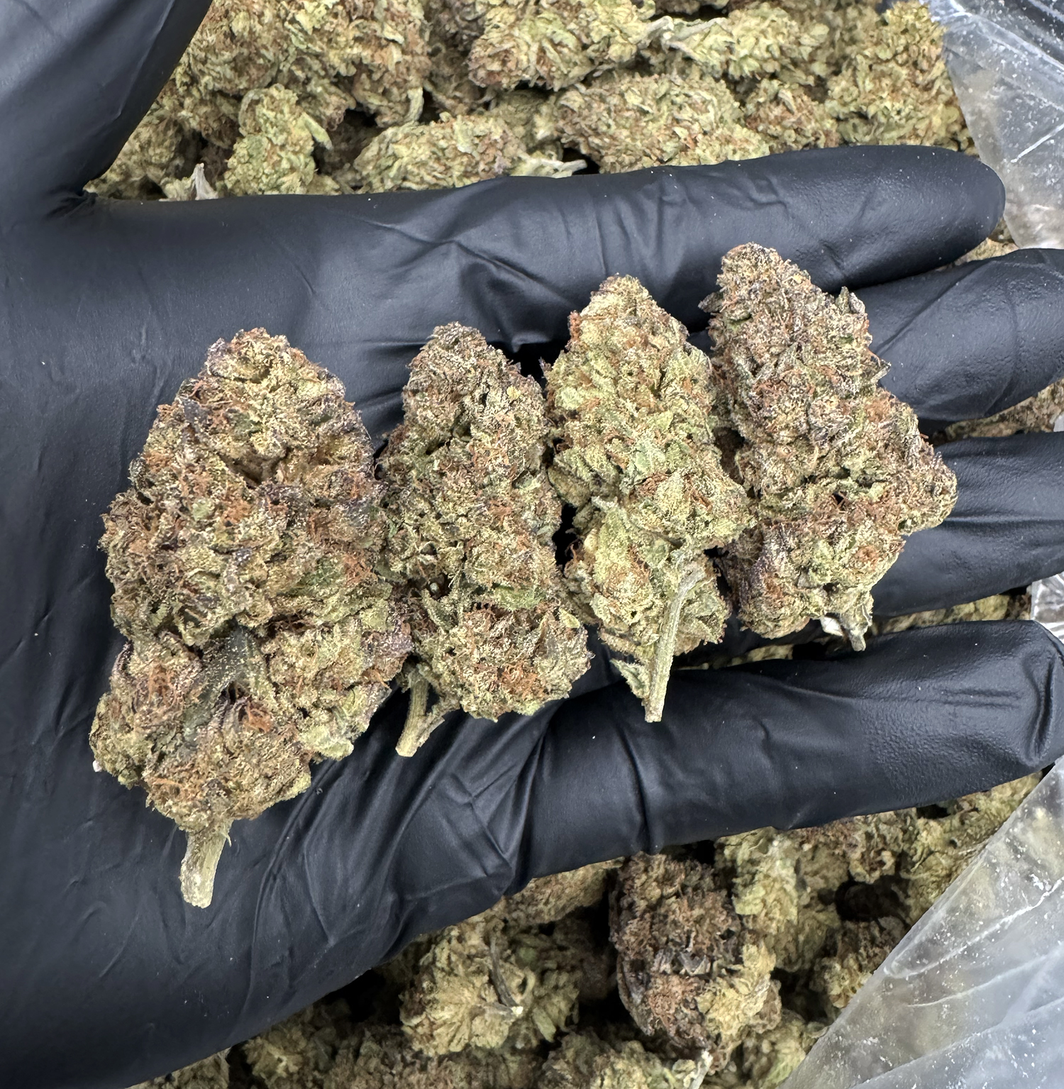 Appearance: Fluffy olive-green buds with orange hairs and chunky white trichomes